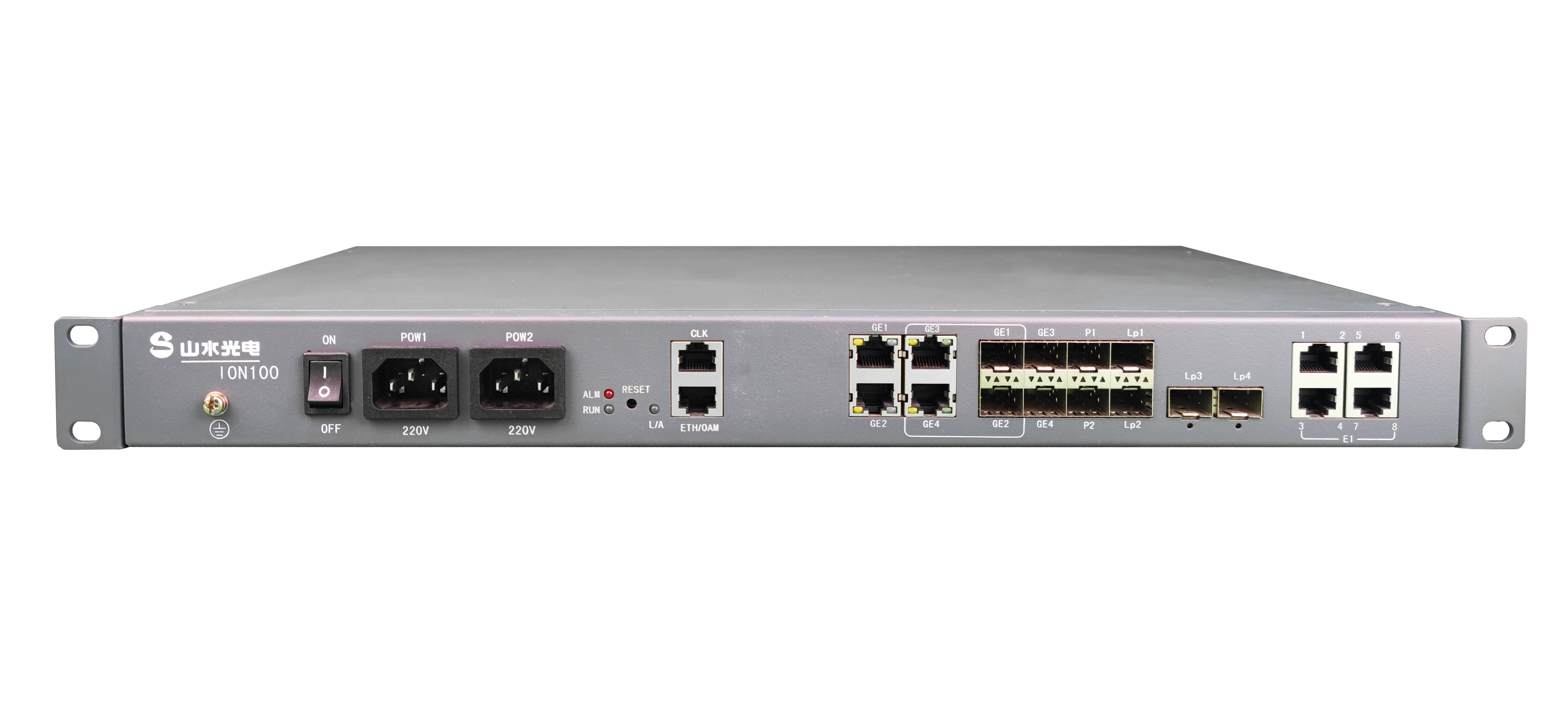 山水光電ION100基于分組交換和 OTN 技術(shù),產(chǎn)品定位于OTN匯聚網(wǎng)絡(luò)的接入層,具備 E1、FE、GE、10GE LAN、STM-1、STM-4 等多種業(yè)務(wù)接入,能夠?qū)崿F(xiàn)對接入業(yè)務(wù)的匯聚、整合和疏導(dǎo);設(shè)備具有配置簡單、適合各種大小帶寬業(yè)務(wù)、端到端的組網(wǎng)、及電信級保護的能力,支持被第三方網(wǎng)管平臺配置/管理,為用戶構(gòu)建智能、高效、可靠、靈活、易維的網(wǎng)絡(luò)。